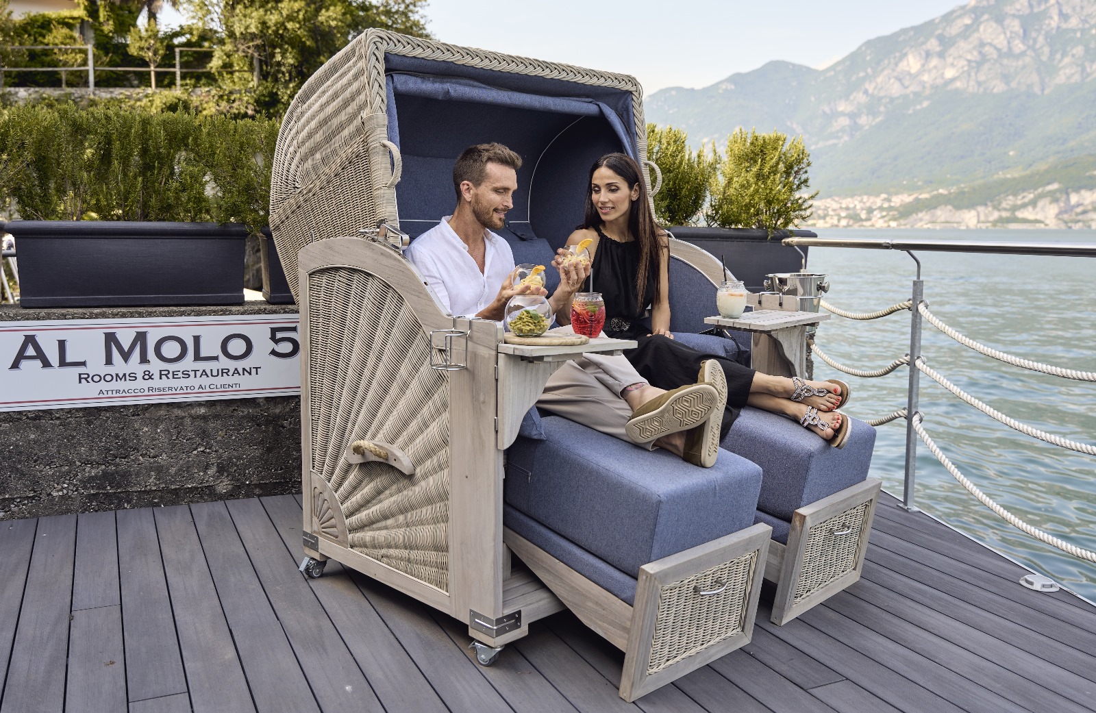 The waterfront restaurant provides an unforgettable dining experience, combining refined cuisine with a stunning setting. For those who wish to explore the lake, Al Molo 5 offers four vintage boats for exclusive, tailor-made tours, allowing guests to discover iconic locations such as Varenna, Bellagio, Tremezzo, and Lenno in style. Convenience is also a priority, with secure covered parking available for guests.